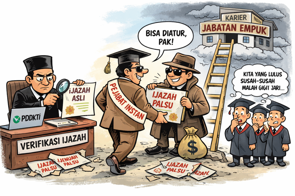 pihak yang memalsukan atau menerbitkan ijazah yang tidak sah, pihak yang secara sadar menggunakan ijazah tersebut sebagai syarat pencalonan legislatif, dan pihak-pihak yang meloloskan dokumen tersebut pada tahap verifikasi administratif, meskipun diduga tidak memenuhi ketentuan hukum yang berlaku.