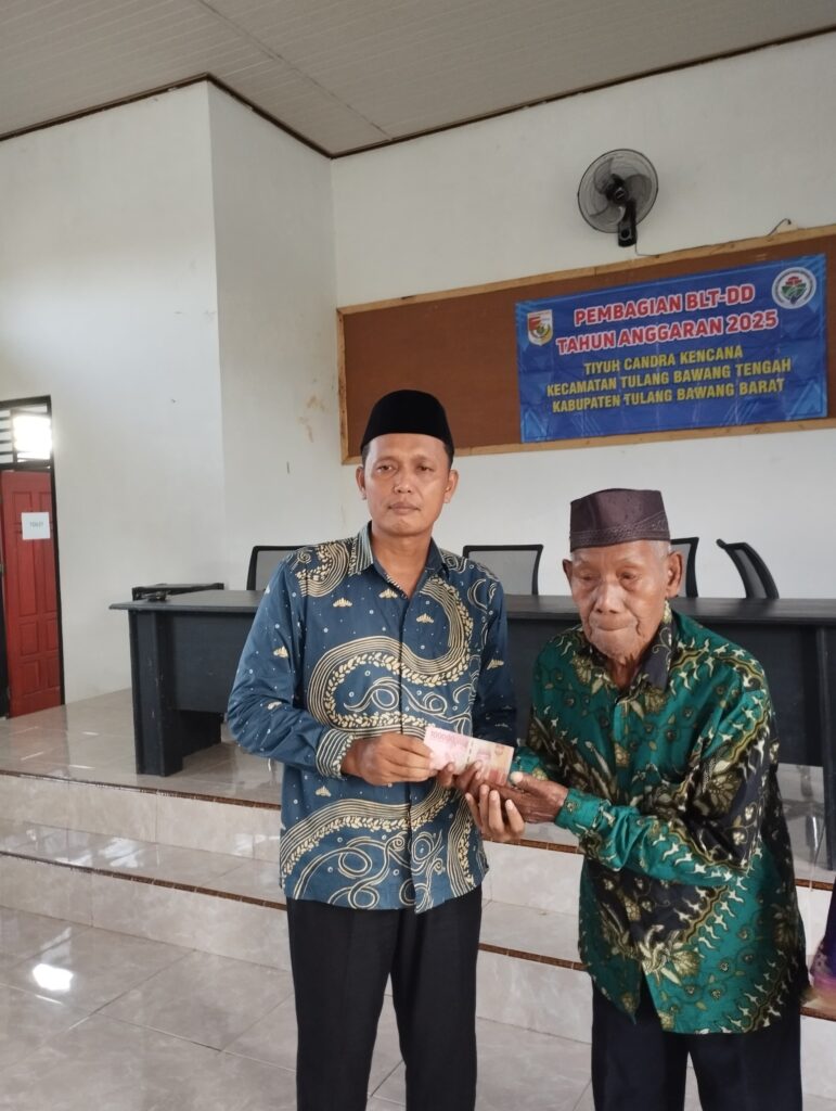 Tulang Bawang Barat, q-koko.site — Pemerintah Tiyuh Candra Kencana, Kecamatan Tulangbawang Tengah, Kabupaten Tulangbawang Barat, menyalurkan Bantuan Langsung Tunai Dana Desa (BLT-DD) Tahun 2025 kepada 15 Keluarga Penerima Manfaat (KPM).